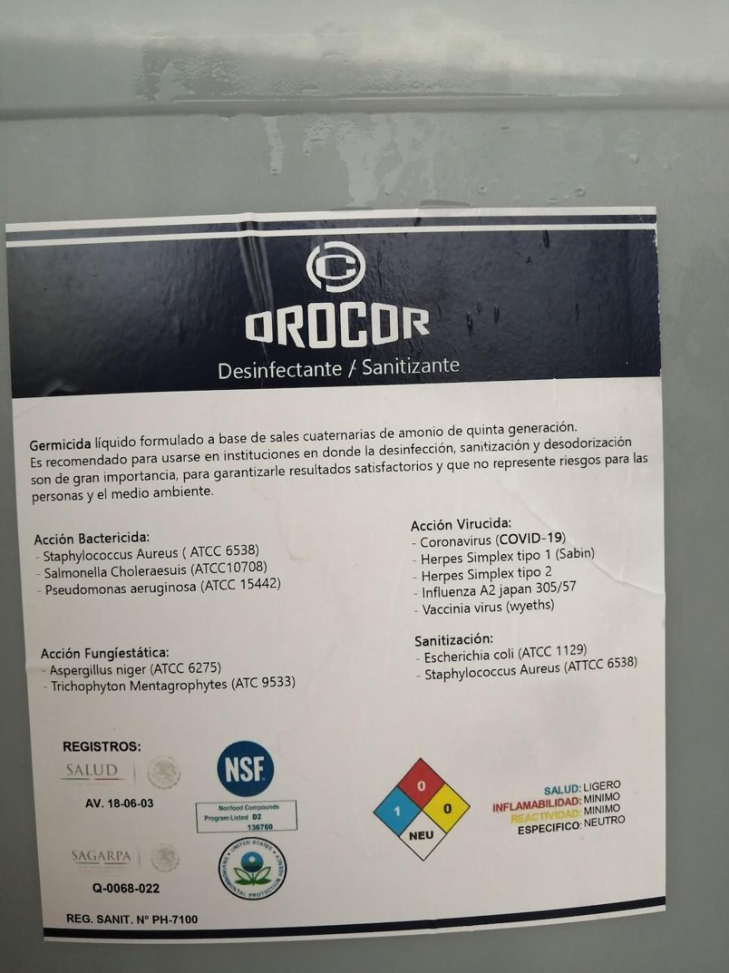 Use of cleaning chemicals that are effective against Coronavirus
