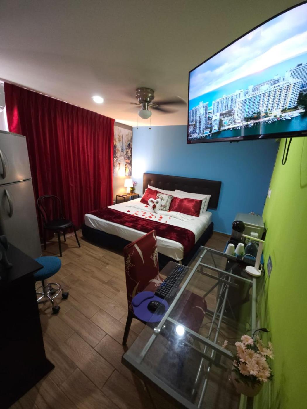 Deluxe Queen Room. The double room features a wardrobe, a safe deposit box, as well as a private bathroom featuring a shower and a hairdryer. The spacious double room provides air conditioning, a private entrance, a coffee machine, a dining area and a flat-screen TV with streaming services. The unit offers 1 bed. ;